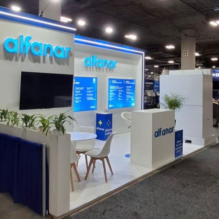 Alfanar için 2025 yılında Las Vegas'ta düzenlenen RE+ fuarında 18 metrekarelik özel tasarım ahşap bir sergi standı ürettik ve kurduk.